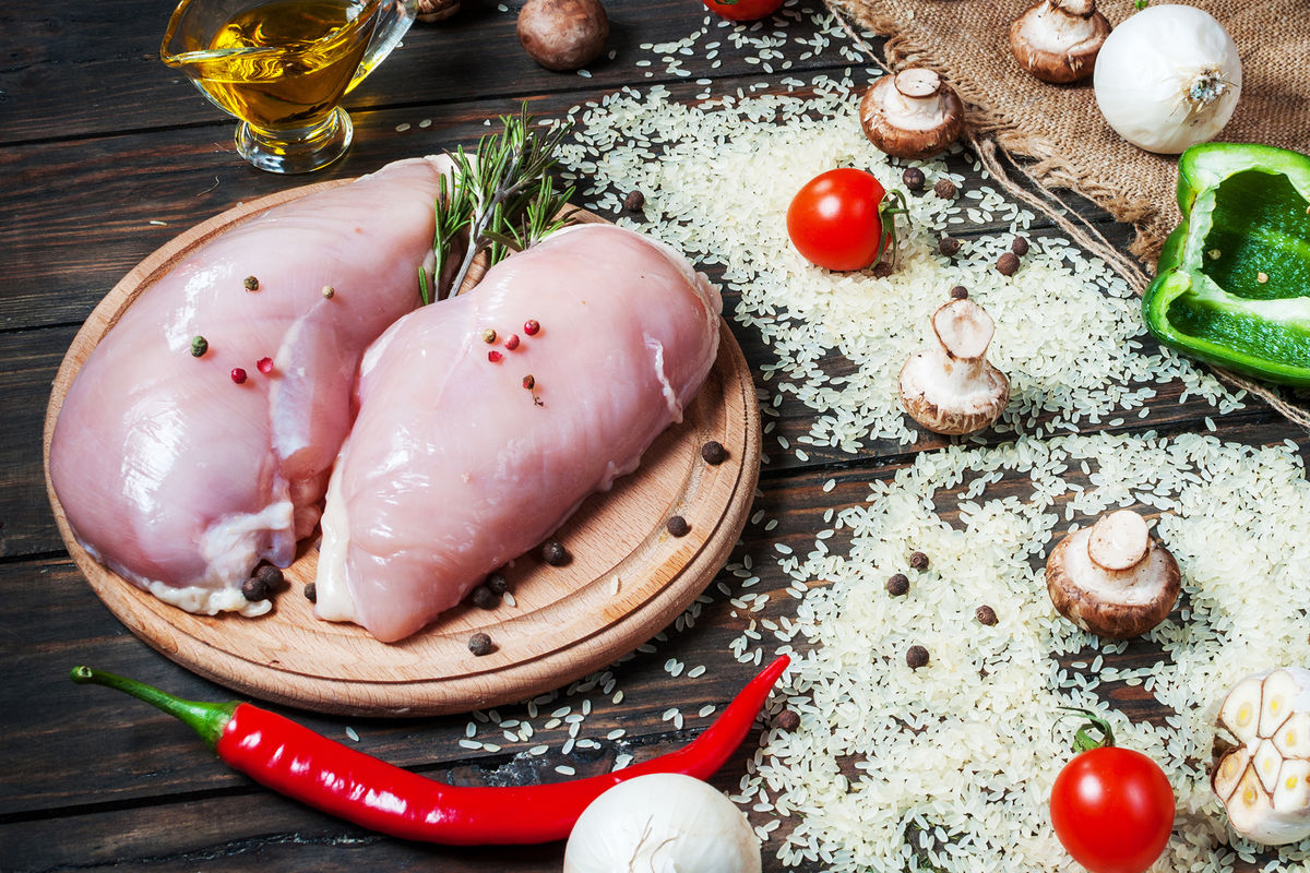 - Нарежьте куриное филе ломтиками. Измельчите арахис и смешайте с сухарями. Взбейте яйца, посолите и поперчите.