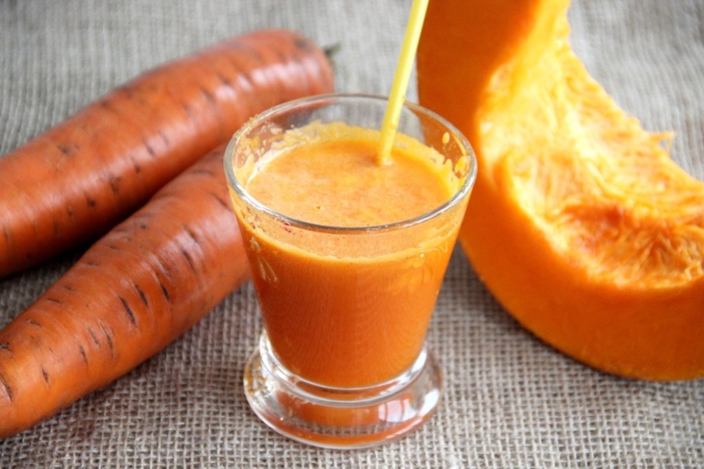 Свежий выжатый сок из моркови и тыквы очень полезен для человеческого организма.