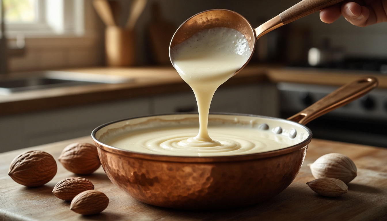 В основе Бешамеля лежит технология приготовления «Ру» — термически обработанной смеси пшеничной муки и жира. При нагревании крахмальные зерна в муке лопаются и начинают поглощать жидкость, образуя густую структуру. Сливочное масло здесь выступает не только как вкусовая добавка, но и как защитная оболочка для каждой частицы муки, предотвращая их немедленное слипание при контакте с молоком.