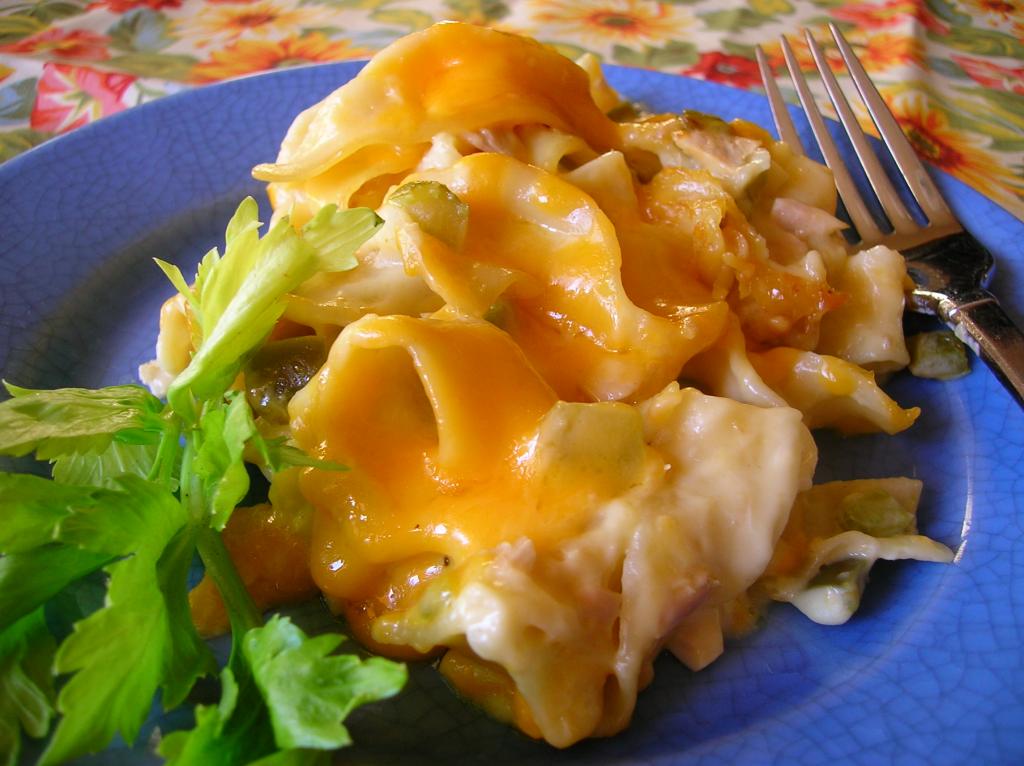 Простенький рецепт запеченного тунца с лапшой, сыром, грибами, овощами и другими ингредиентами.