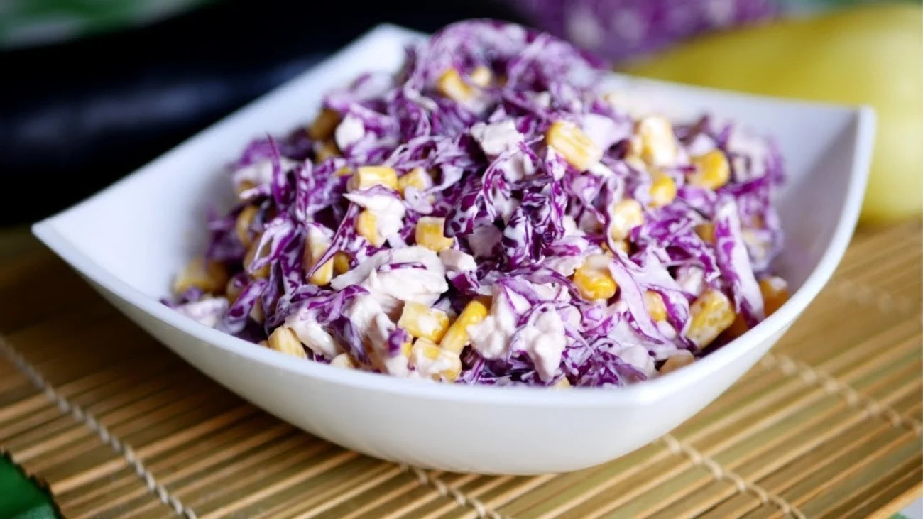 Рассматриваем простой и вкусный рецепт немецкого салата из синей капусты, куриного филе и кукурузы, который обрадует вас своей сочностью и насыщенным вкусом.